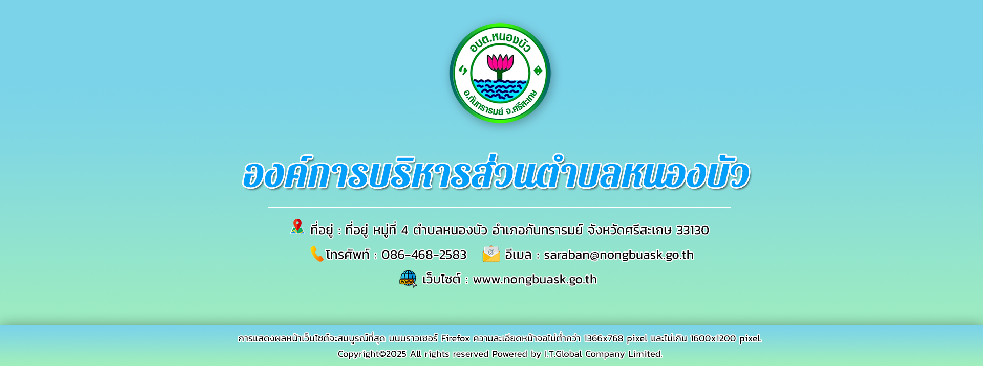 นายสนั่น สุขอ้วน นายกองค์การบริหารส่วนตำบลหนองบัว นายวิวัฒน์ บุญทองมาก รองนายกอบต.หนองบัว นายศิริชัย คำศรี นักสังคมสงเคราะห์ อบต.หนองบัว ร่วมมอบรถเข็นสำหรับผู้พิการ ให้แก่นางทองจันทร์ สุขจิตร บ้านท่าช้าง หมู่ที่4 ต.หนองบัว อ.กันทรารมย์ จ.ศรีสะเกษ